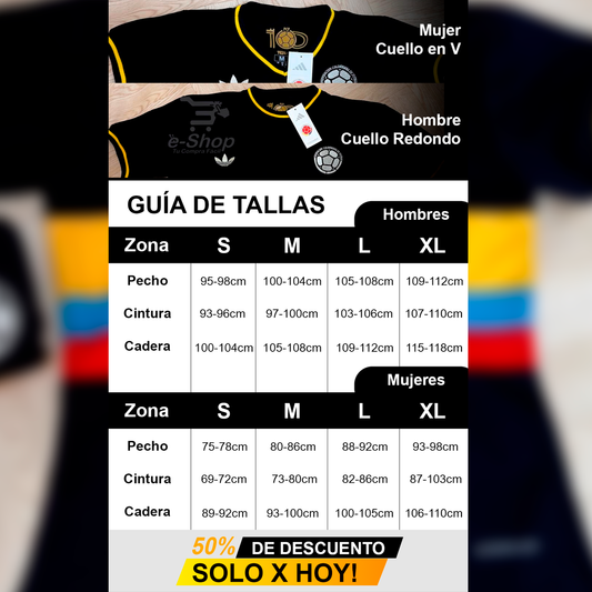 AHORRA $89.900Camiseta Colombia Centenario 2025 Fan (Negra)