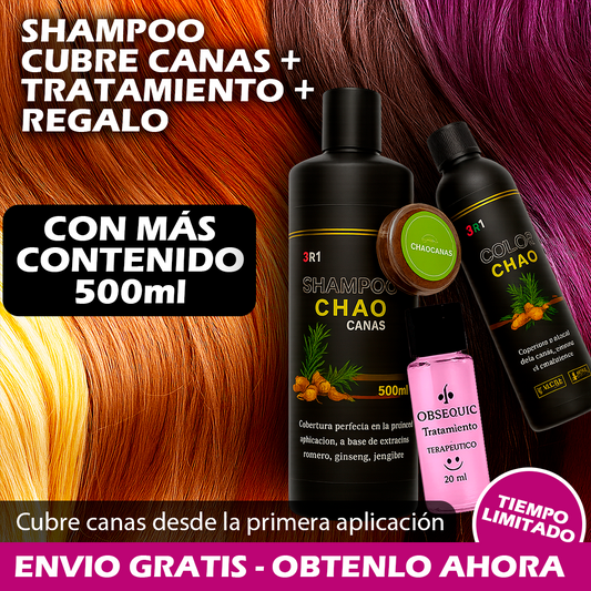 AHORRA $10.000SHAMPOO CHAO CANAS + TRATAMIENTO + OBSEQUIO